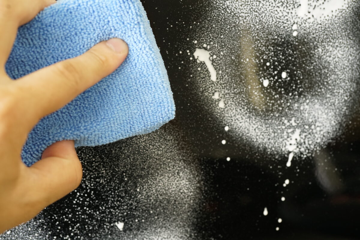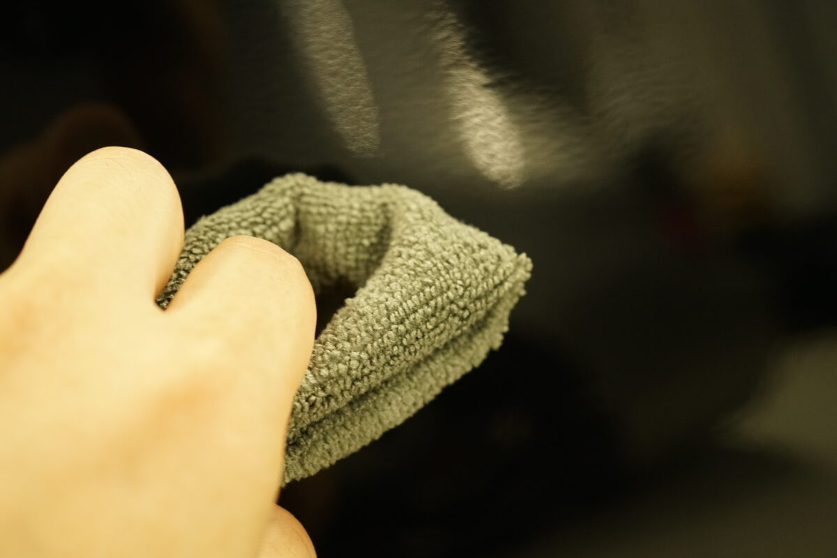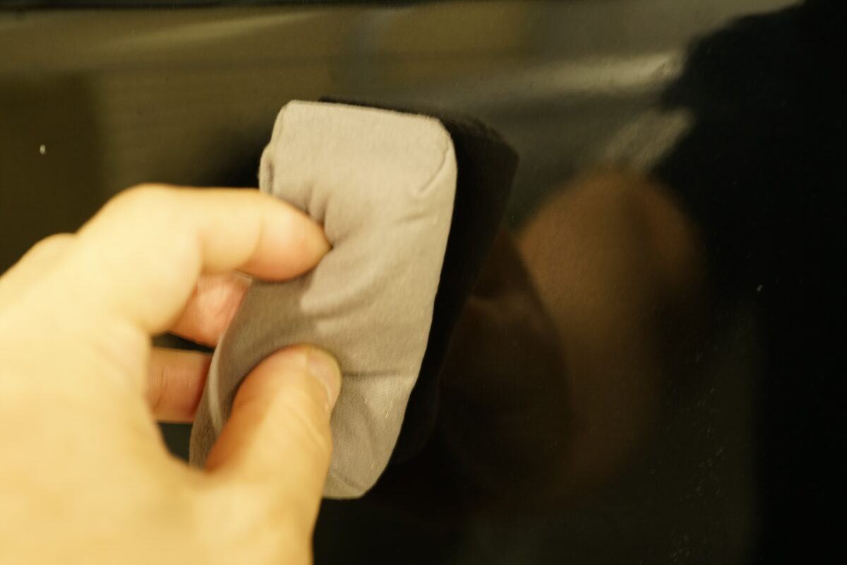 その後、付属のアプリケーターで均一に塗り広げ、マイクロファイバークロスで乾拭きすれば施工完了です。