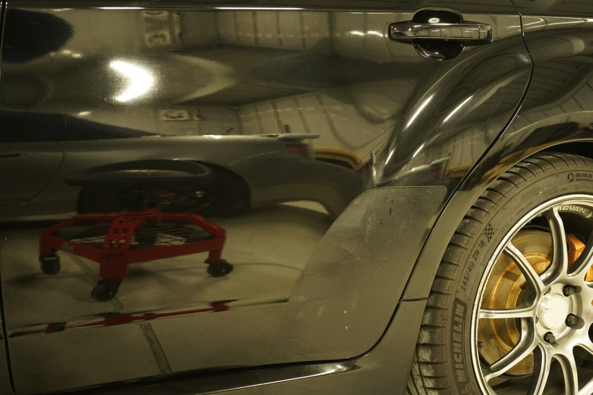 すでにガラスコーティング済みのため、ボディの映り込みに大きな変化は見られませんでしたが、鏡面感がわずかに向上したように感じました。