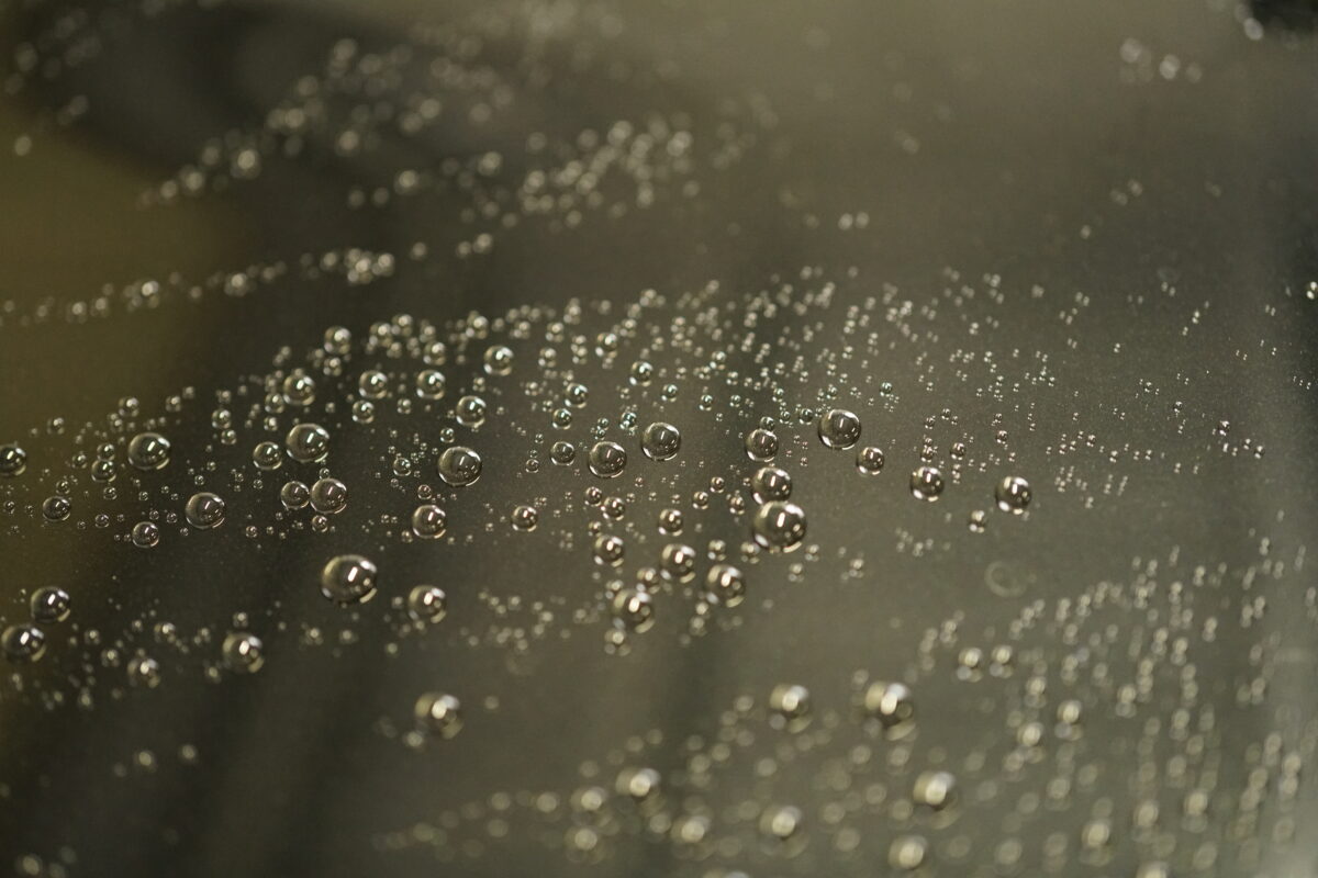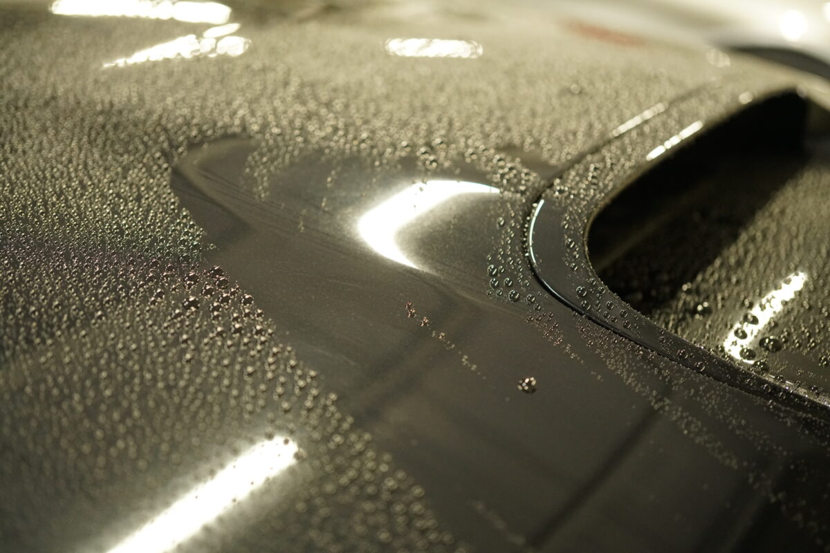 また、大雨の中を走行した後にガレージへ戻って車体表面を確認すると、水滴が粒状にまとまっており、撥水効果がしっかりと機能していることが目視で確認できました。