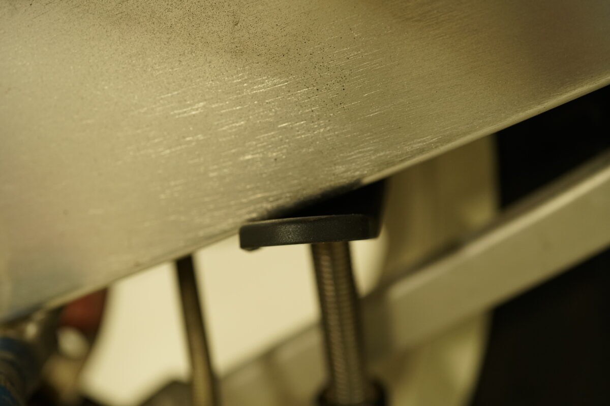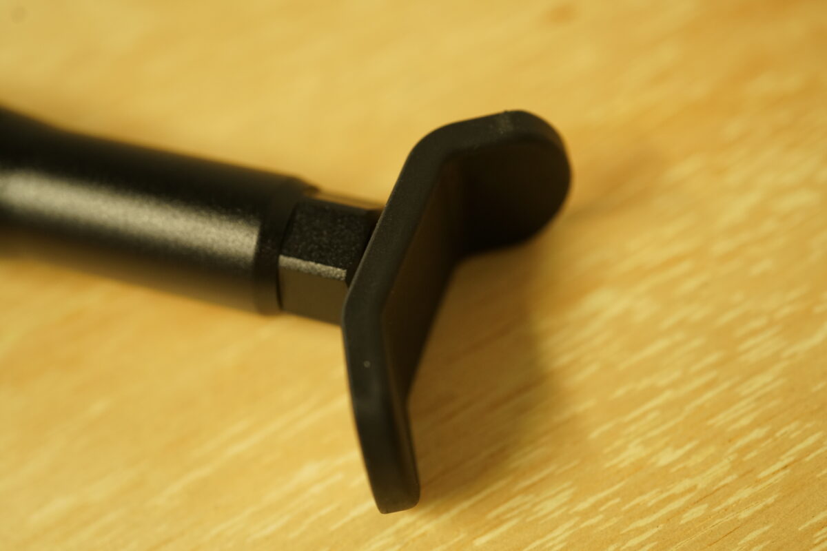 スイングアームと接触する部分にはゴム素材が使用されており、傷がつきにくいよう配慮されています。