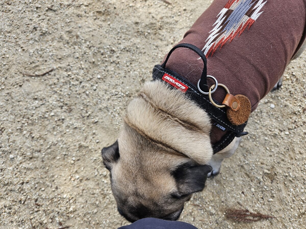 革素材などを使ったおしゃれなハーネスも数多く販売されていますが、実用性や愛犬への負担を考えると、Ezydogのクイックハーネスの方が愛犬への負荷が少ないと思います。