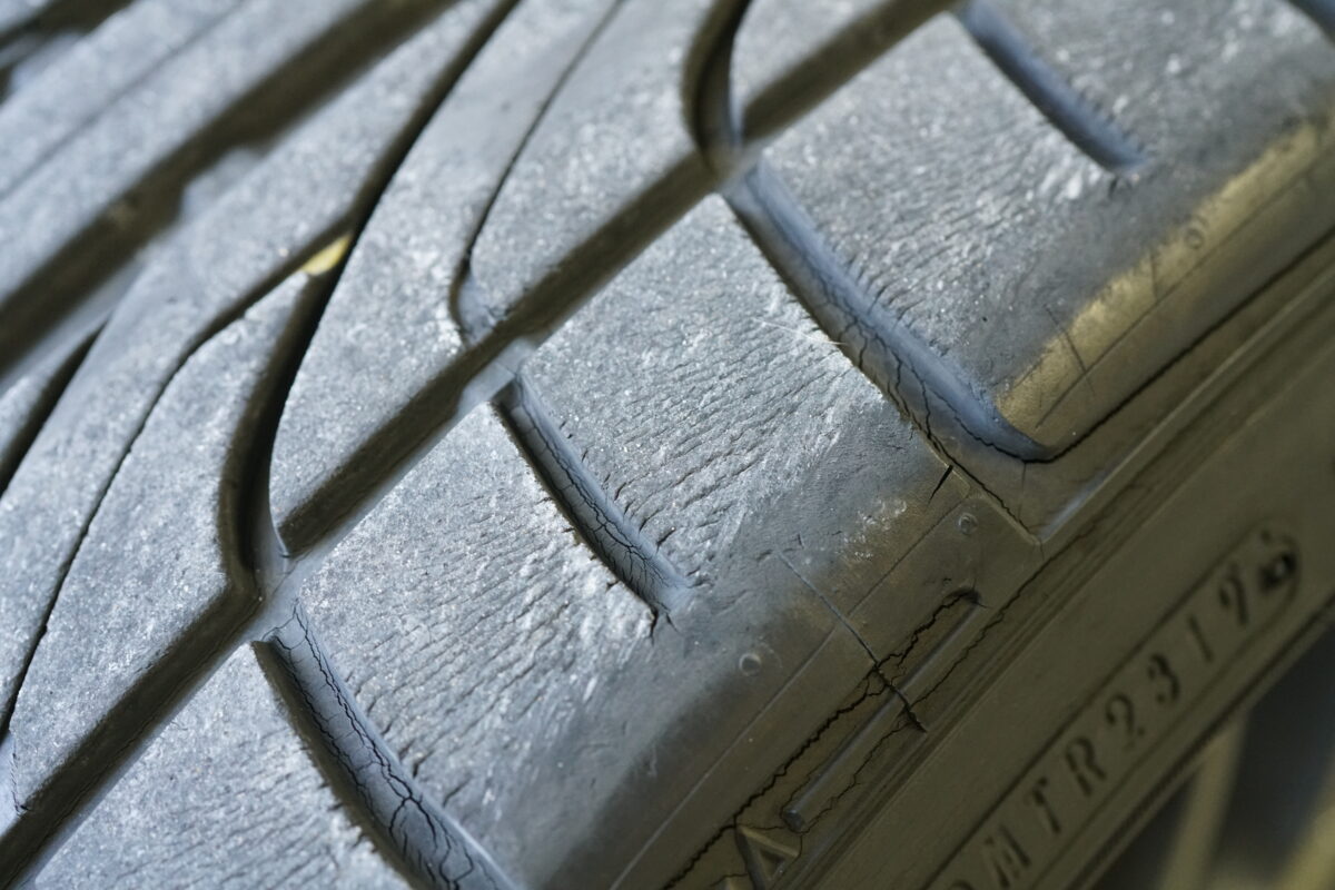 トレッド部分はまだ溝はありますが、ヒビが入ってしまっています。