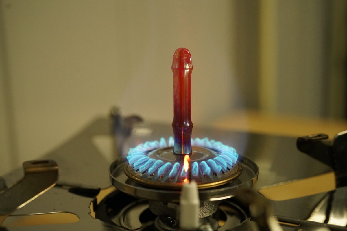 バーナーの火力や焼き入れの時間によって色味や風合いが変化するため、世界に一つだけの自分だけのオリジナルホイッスルを作ることができます。